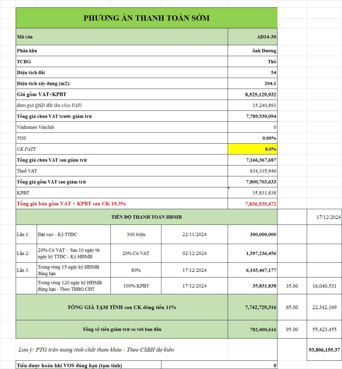 Phiếu Tính Giá Chi Tiết Của AD1430 Vinhomes Ocean Park 3